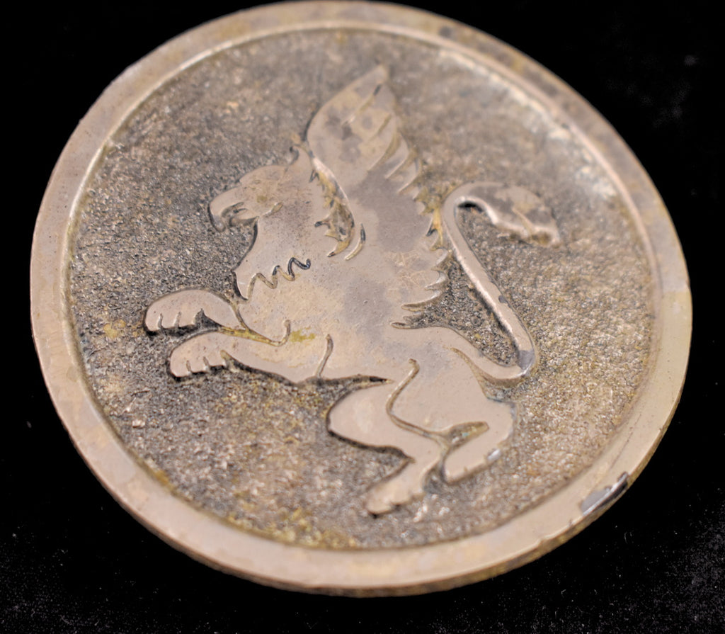 Belt buckles are a great way to show off your style and interests and they took off with commercial success in the 1970s. This belt buckle is pewter with a griffin on the front, measures 2 1/2 inches around, stamped "1877-1977 100 years of service to the railroads, Great American Buckle Co Chicago, Griffin Wheel Co., serial 1877". It's in good to fair condition, scuffs and discoloration from age as pictured, enamel chipped on the bottom front, it's well loved but still solid. This is an authentic vintage buckle in wearable condition, that has been cleaned and repaired (if necessary). Flaws will be noted, but please ask any questions you may have as this is a FINAL SALE item and cannot be returned.