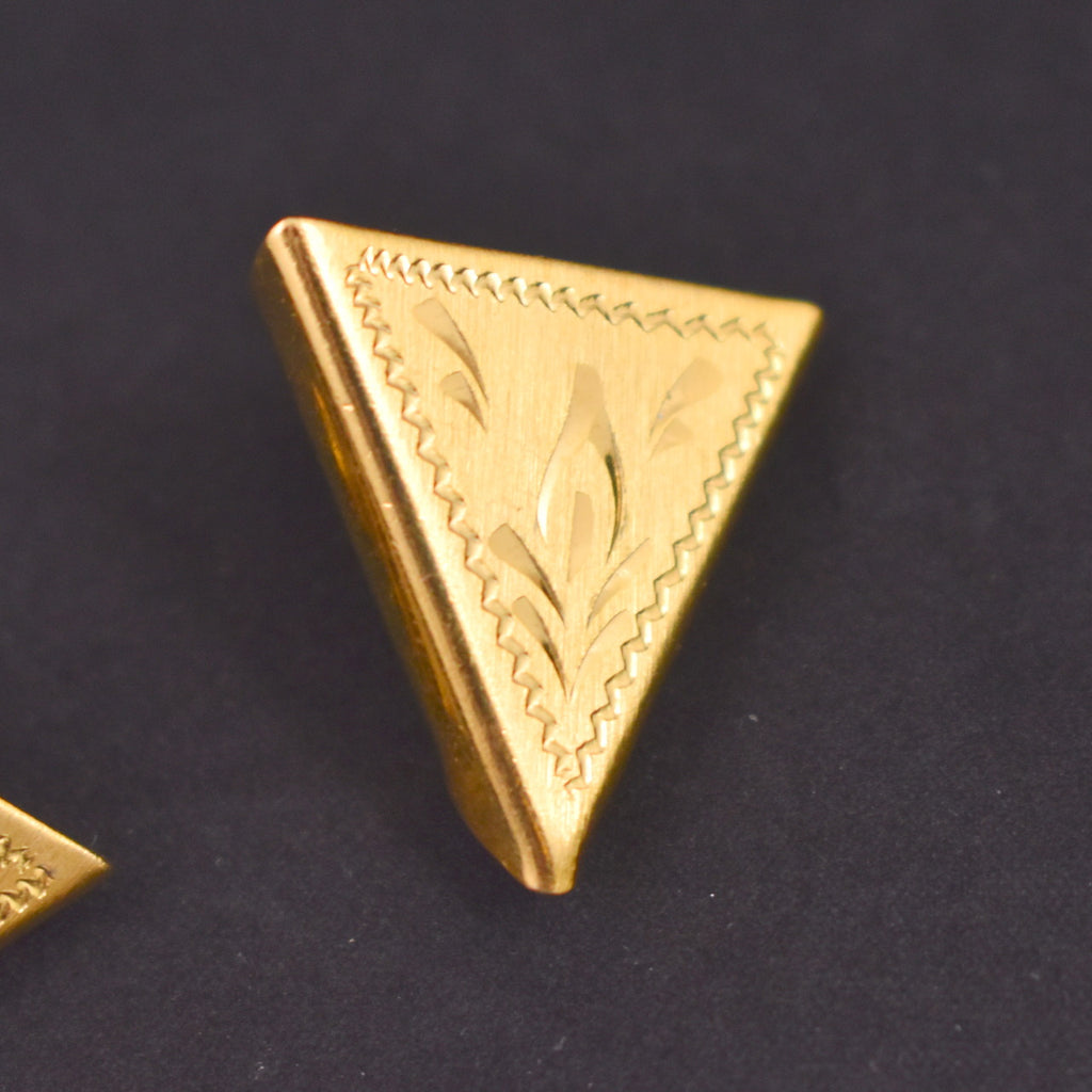Dress up that boring western shirt with some collar tips! This set of two came from a 1970s lot and features swirled etching on the front, 1 inch wide by 1 inch tall, screw backs, excellent condition, minor discoloration on the underside. This is an authentic vintage set in wearable condition, that has been cleaned and repaired (if necessary). Flaws will be noted, but please ask any questions you may have as this is a FINAL SALE item and cannot be returned.