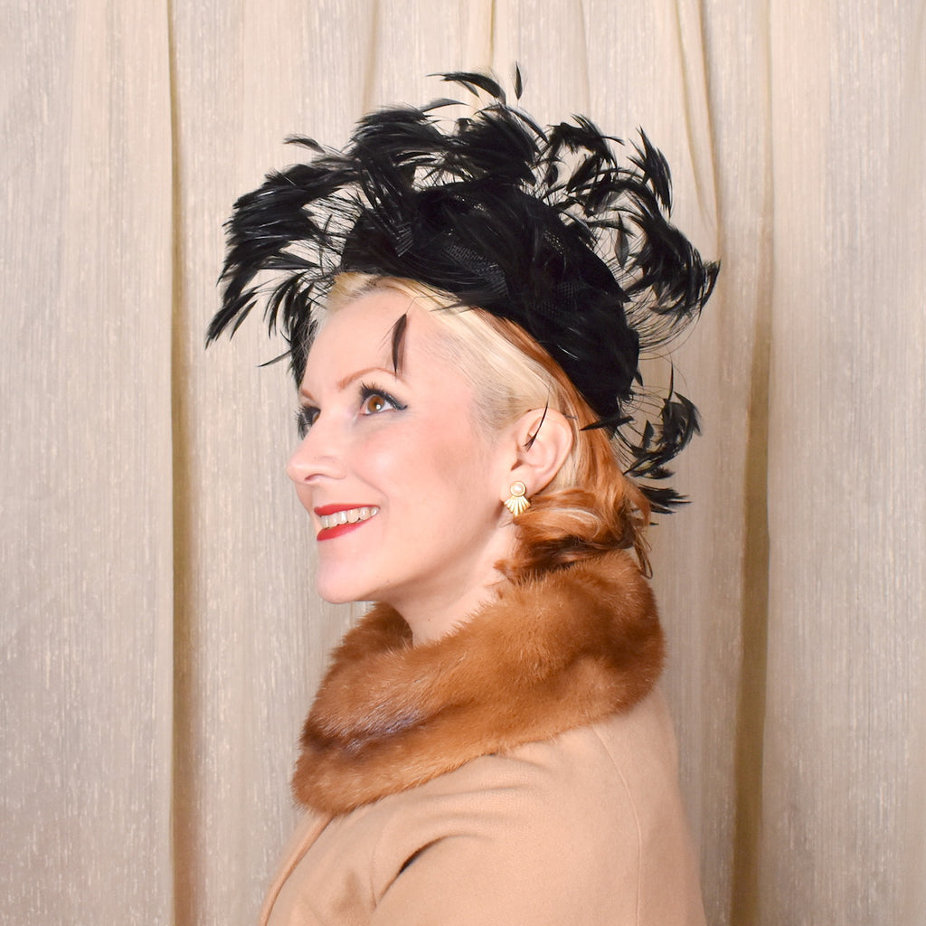 1950s Black Wild Feather Hat
