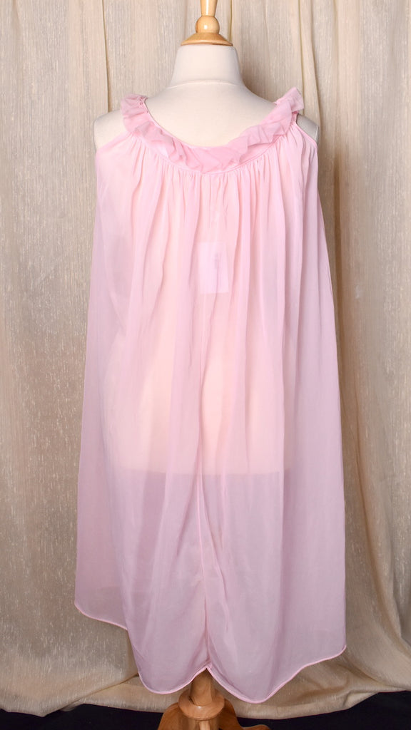 1960s Pastel Pink Sheer Ruffle Night Gown