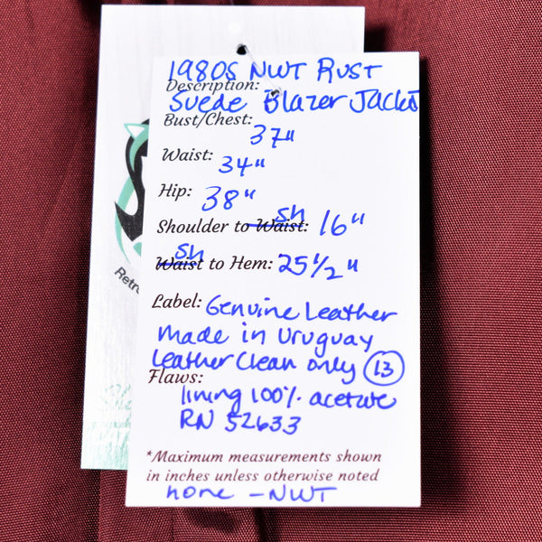 NWT Vintage 1980s Rust Suede & Leather Blazer Jacket
